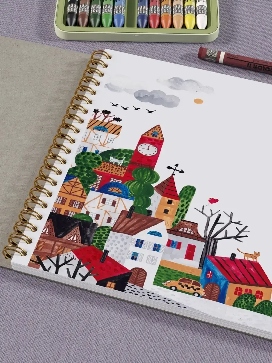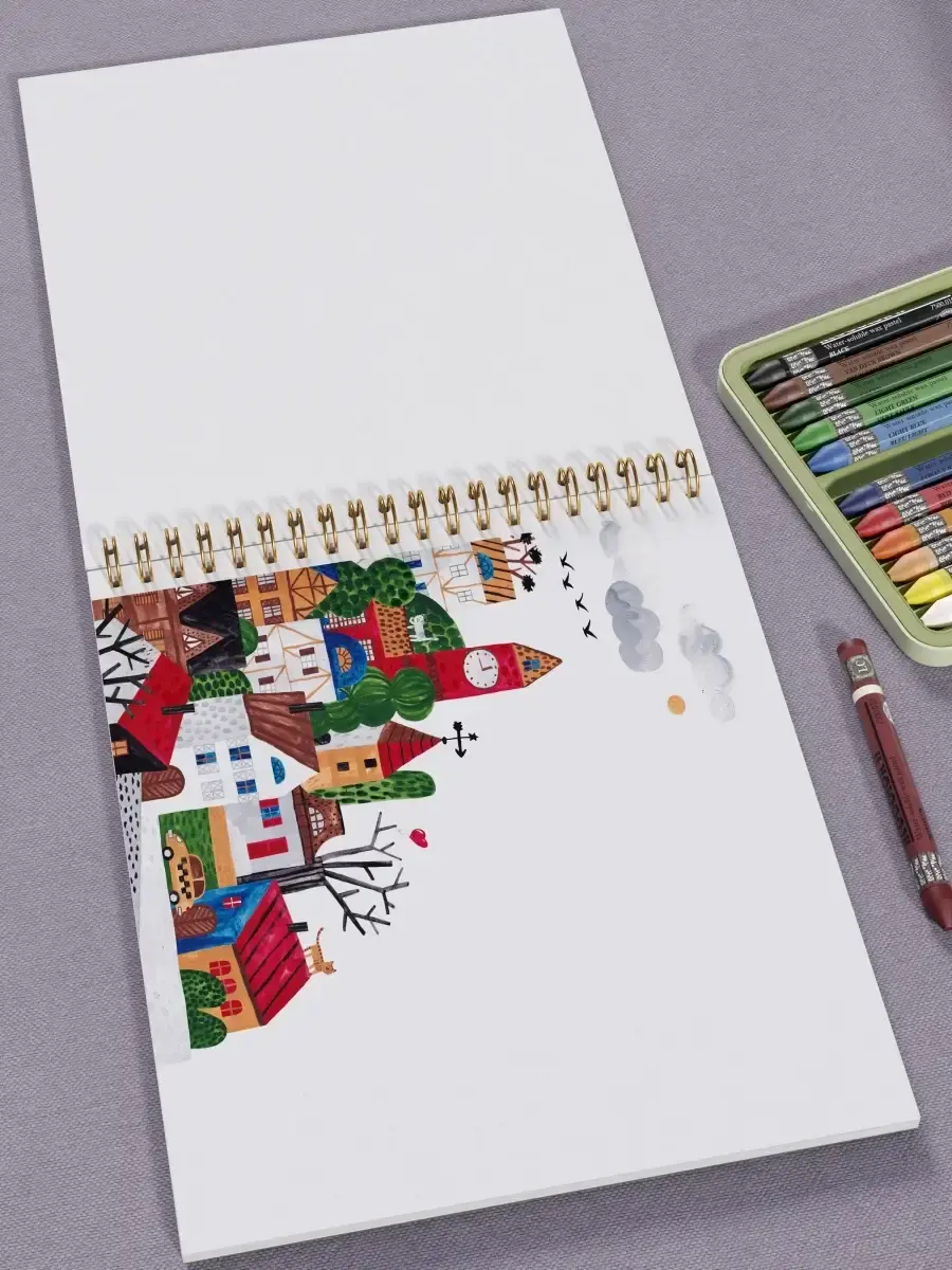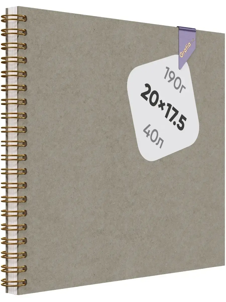Скетчбук из белоснежной австрийской бумаги с поверхностной проклейкой - более гладкой и прочной * очень твёрдые обложка и подложка из крафтового картона толщиной 1.5 мм и плотностью 950 г/м2 * утончённая круглая перфорация и качественная пружина цвета золото максимального диаметра * 40 листов размером 20x17.5см плотностью 190 г/м2 толщиной 0.22 мм * общие масса офсетной бумаги + переплётного картона 332 г и толщина 1.18 см * Абсолютно чистый блокнот и альбом для рисования - хорошая плотная бумага с натуральной премиальной белизной - для скетчинга маркерами отличных светлых и насыщенных ярких цветов!
