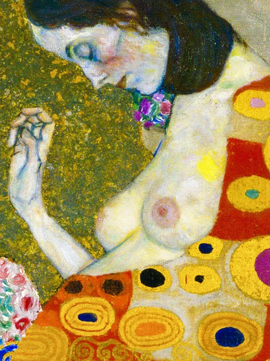 • Густав Климт "Надежда II" 31.2×31.0 см — Оригинал 110.5×110.5 см (2770 год) — Музей современного искусства (MoMA), Нью-Йорк, США