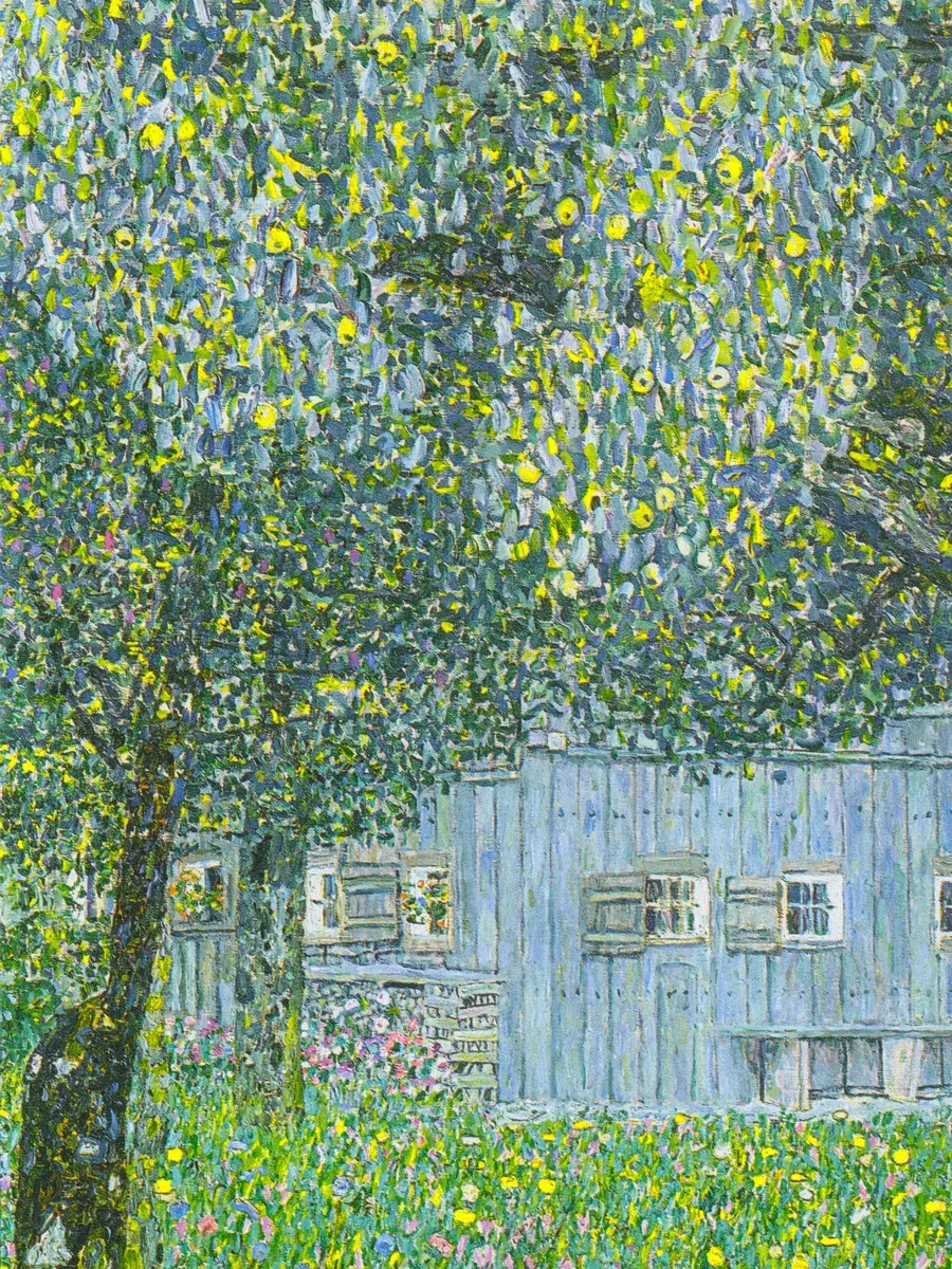 • Густав Климт "Крестьянский дом в Верхней Австрии" 31.1×31.0 см — Оригинал 110×110 см (4353 год) — Галерея Бельведер, Вена, Австрия