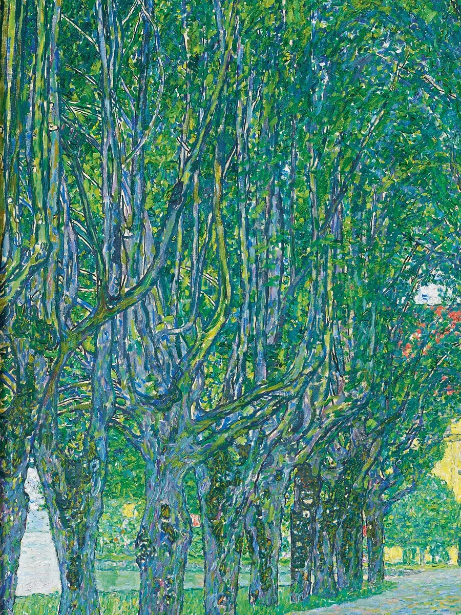 • Густав Климт "Аллея в парке замка Каммер" 30.8×30.8 см — Оригинал 110×110 см (1912 год) — Галерея Бельведер, Вена, Австрия