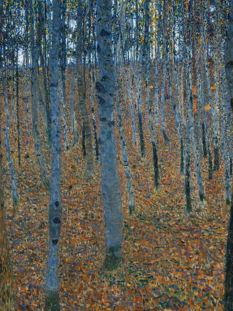 • Густав Климт "Буковая роща" 31.0×30.8 см — Оригинал 100×100 см (1902 год) — Галерея новых мастеров, Дрезден, Германия