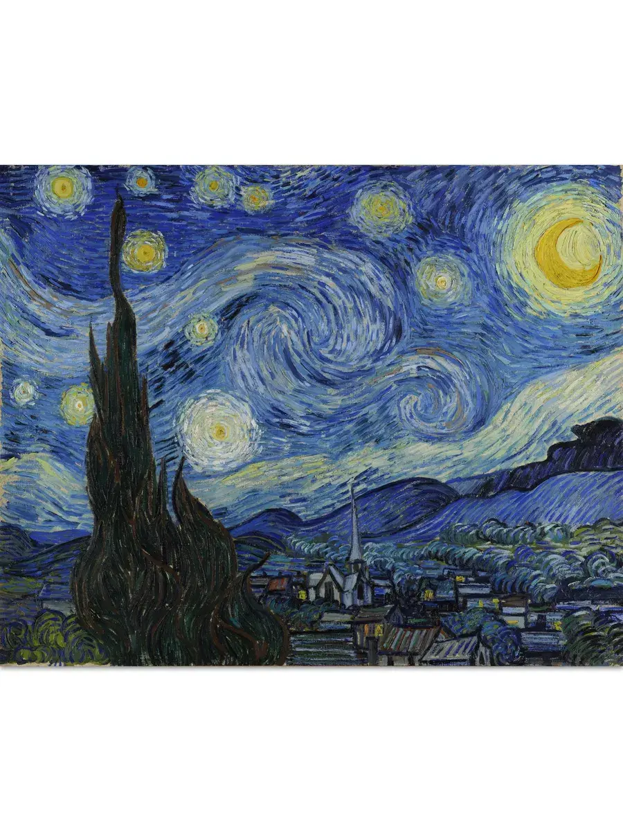 • Ван Гог "Звёздная ночь" 38.3×30.8 см — Оригинал 73.7×92.1 см (1889 год) — Музей современного искусства (MoMA), Нью-Йорк, США