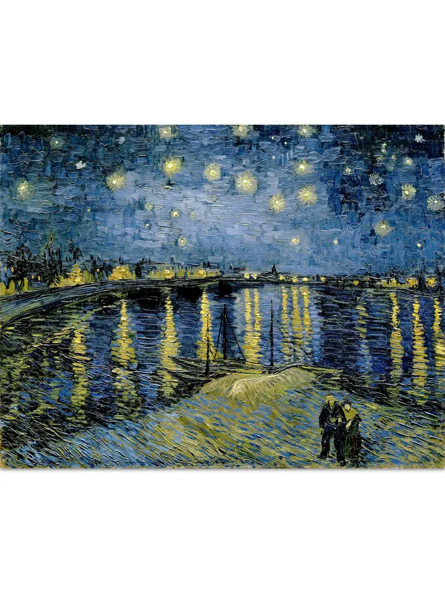 • Ван Гог "Звёздная ночь над Роной" 40.1×31.0 см — Оригинал 73.7×92.1 см (1889 год) — Музей Орсе, Париж, Франция