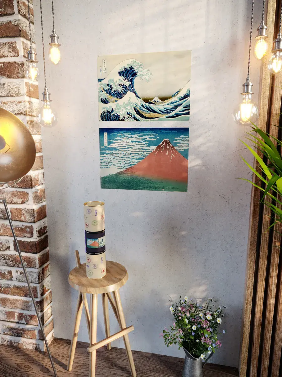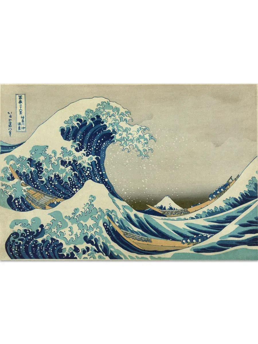 • Кацусика Хокусай "Большая волна в Канагаве" 45.3×31.0 см — Оригинал 25.7×37.8 см (~1830-32 год) — Метрополитен-музей, Нью-Йорк, США