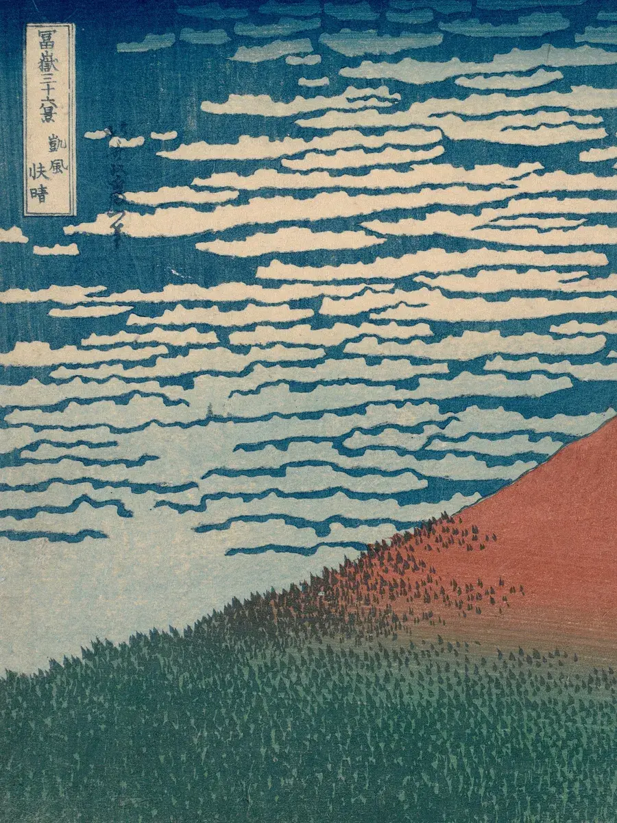 Кацусика Хокусай "Красная Фудзи (Южный ветер. Ясный день)",