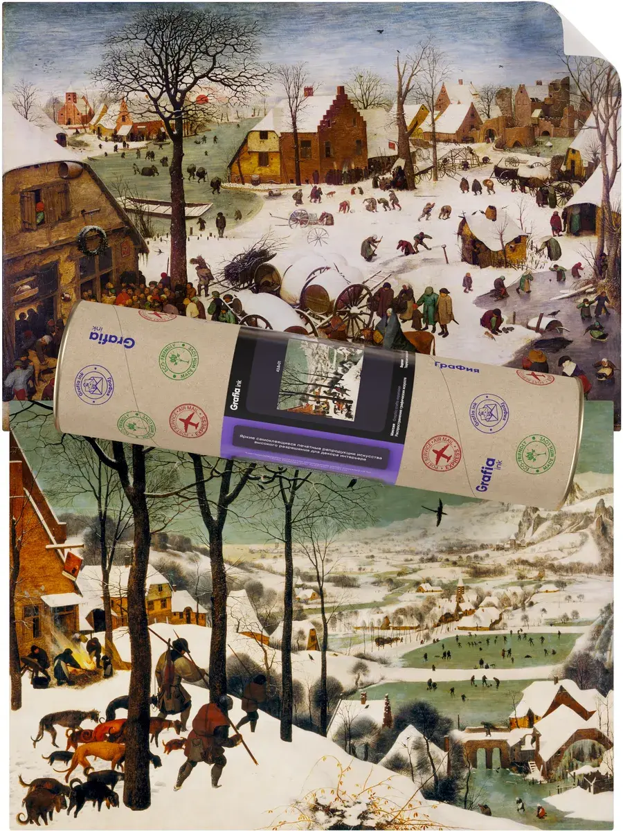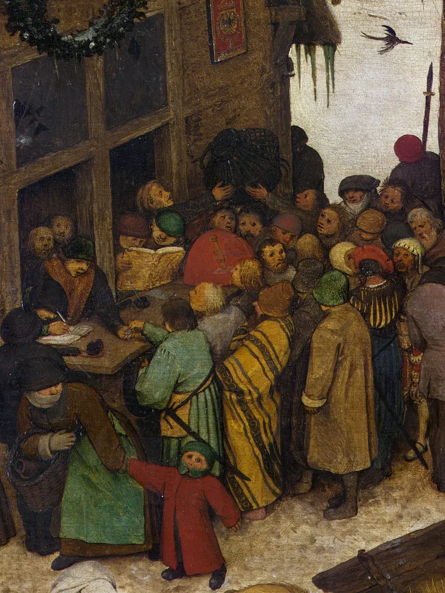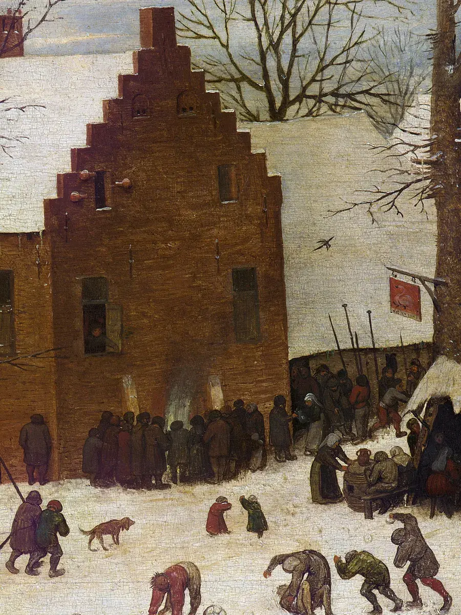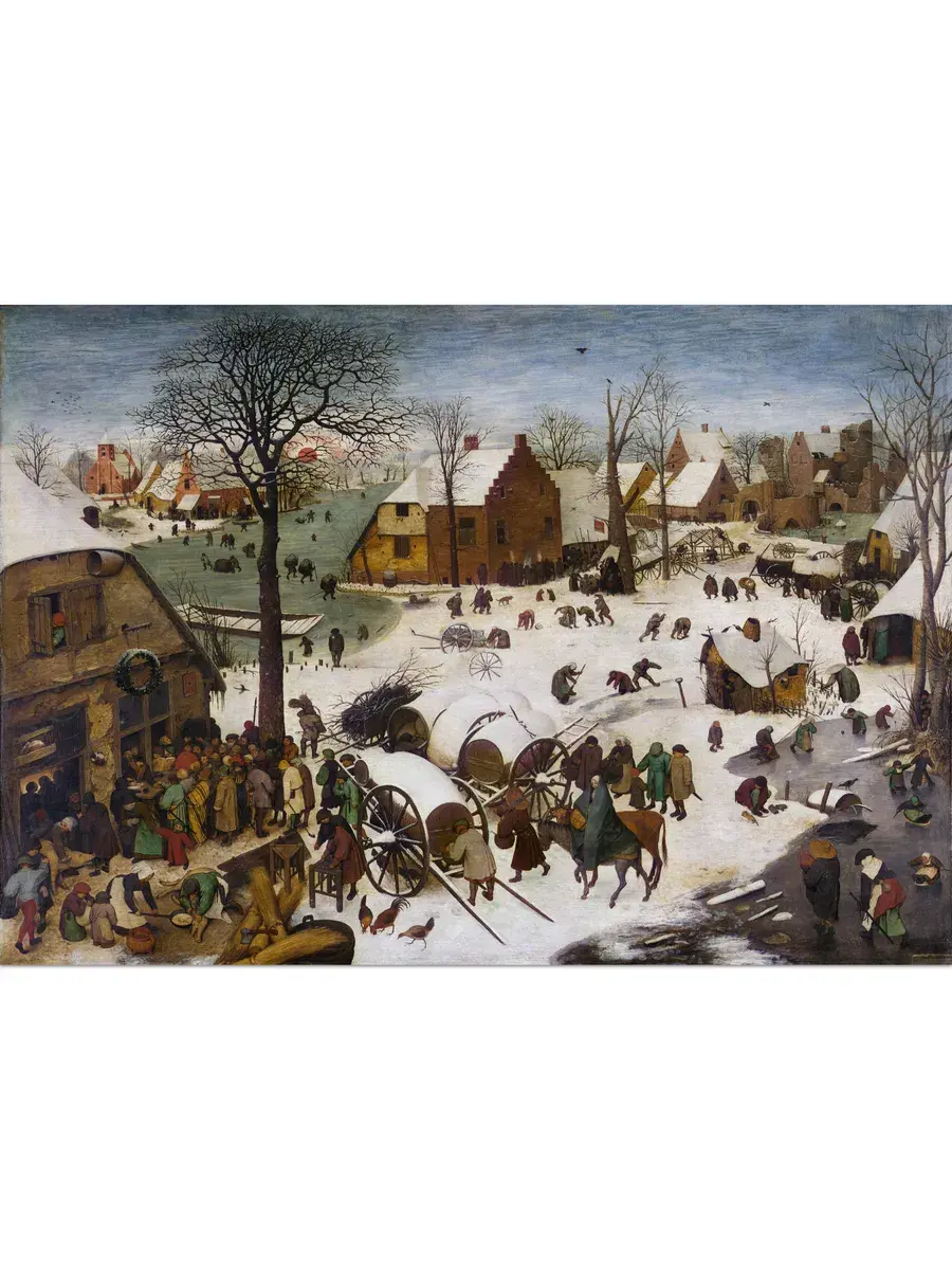 • Питер Брейгель Старший "Перепись в Вифлееме" 44.7×31.0 см — Оригинал 115.5×163.5 см (1566 год) — Королевские музеи изящных искусств, Брюссель, Бельгия