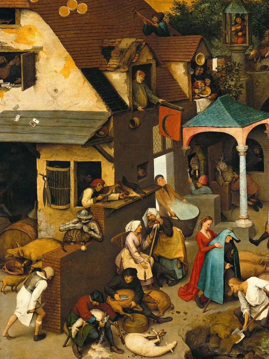 • Питер Брейгель Старший "Фламандские пословицы" 43.7×31.0 см — Оригинал 117×163 см (1559 год) — Берлинская картинная галерея, Берлин, Германия