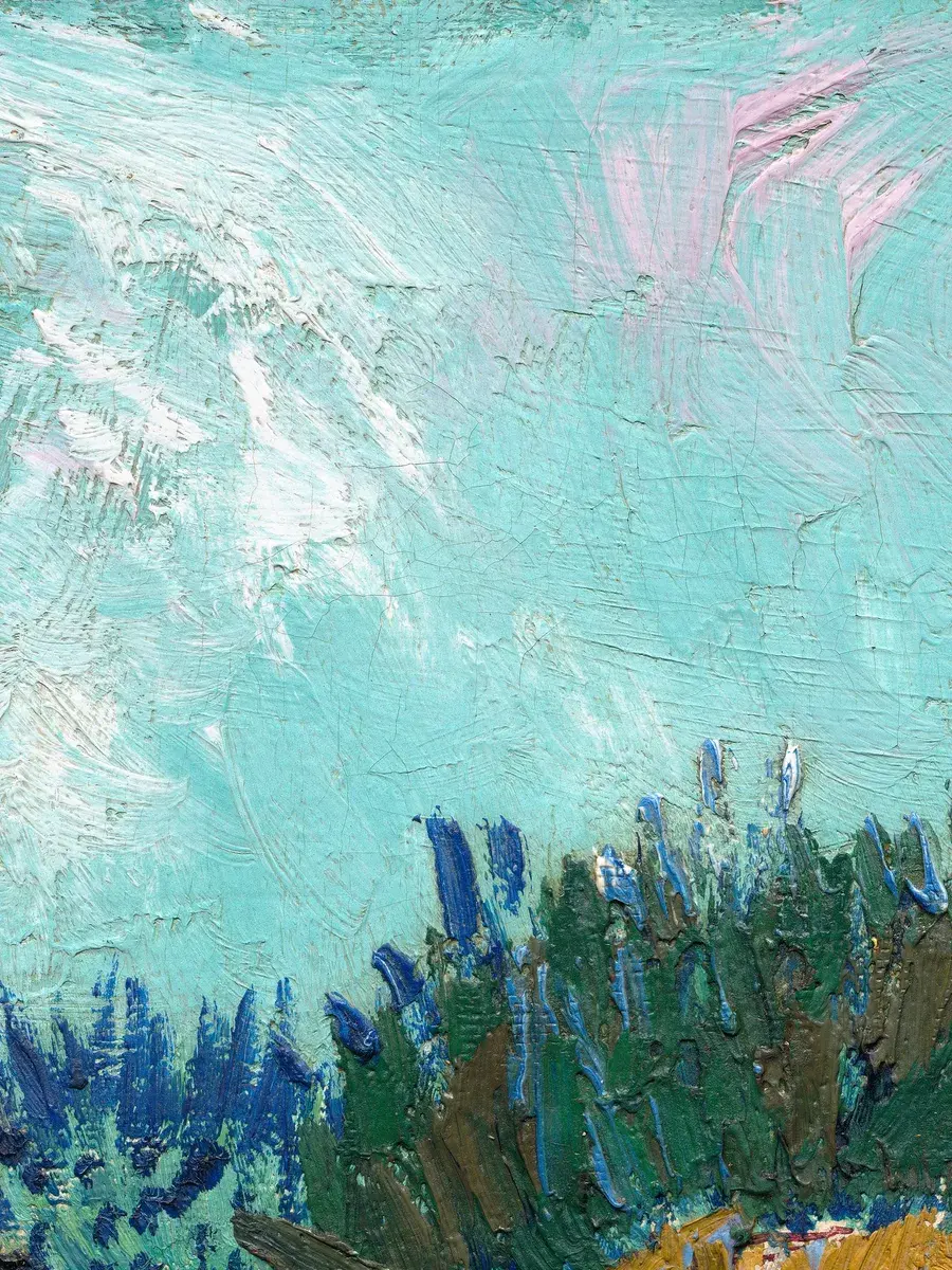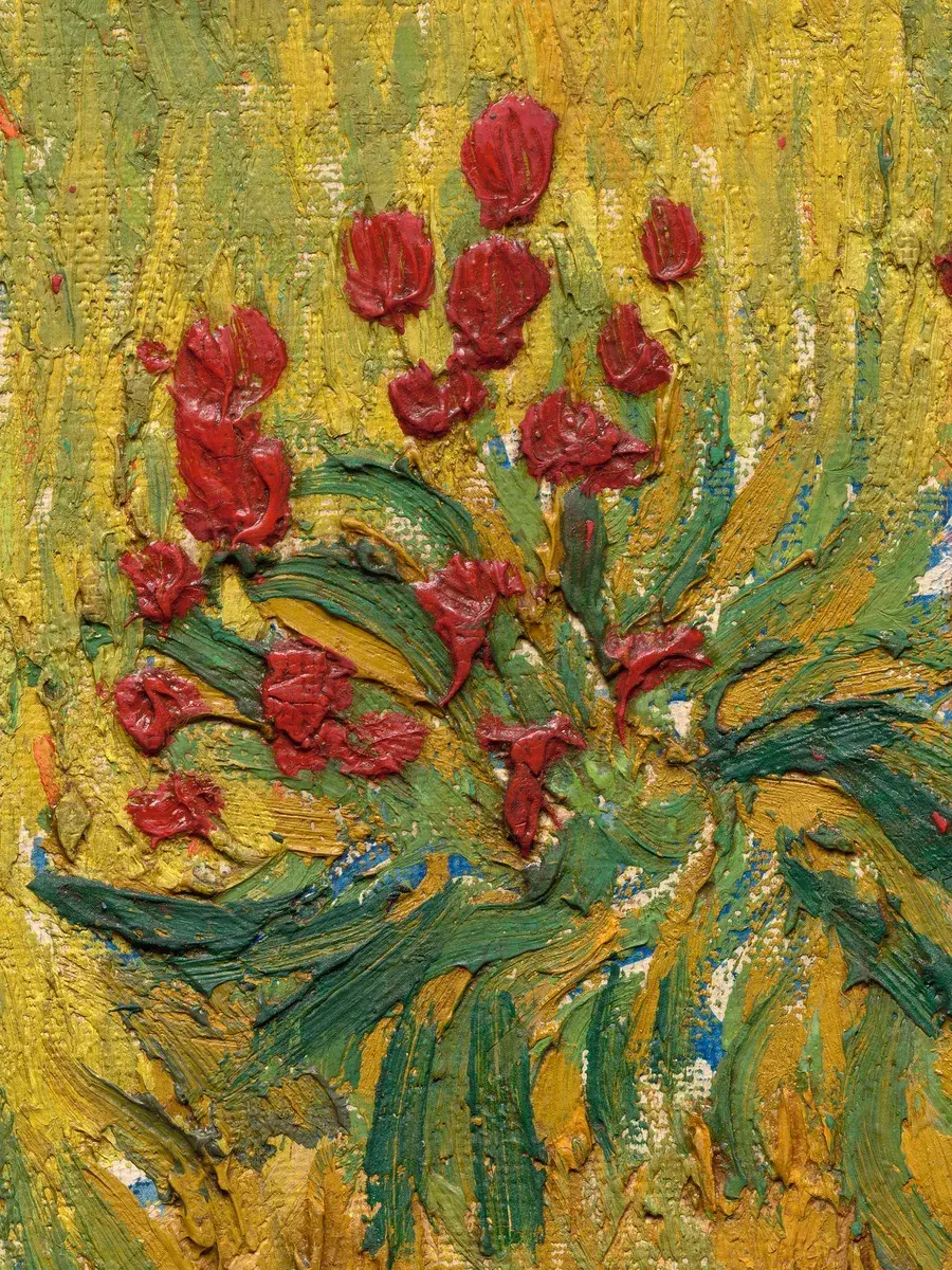 • Ван Гог "Поле ирисов близ Арля" 37.0×31.0 см — Оригинал 54×65 см (1888 год) — Музей Ван Гога, Амстердам, Нидерланды
