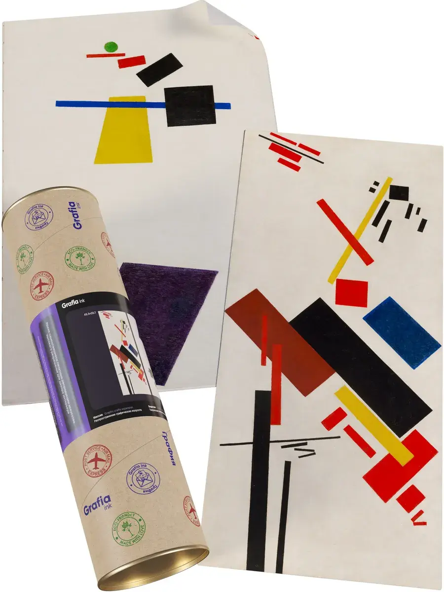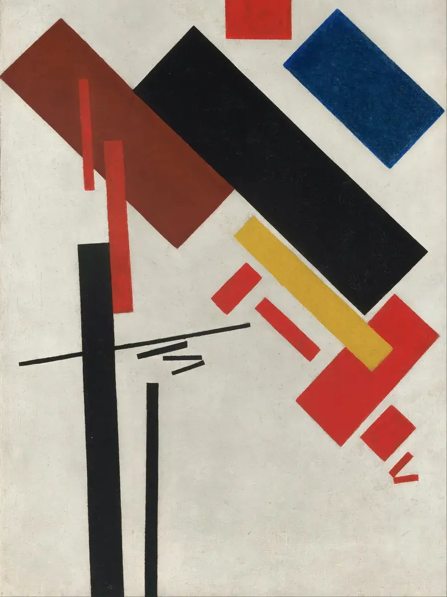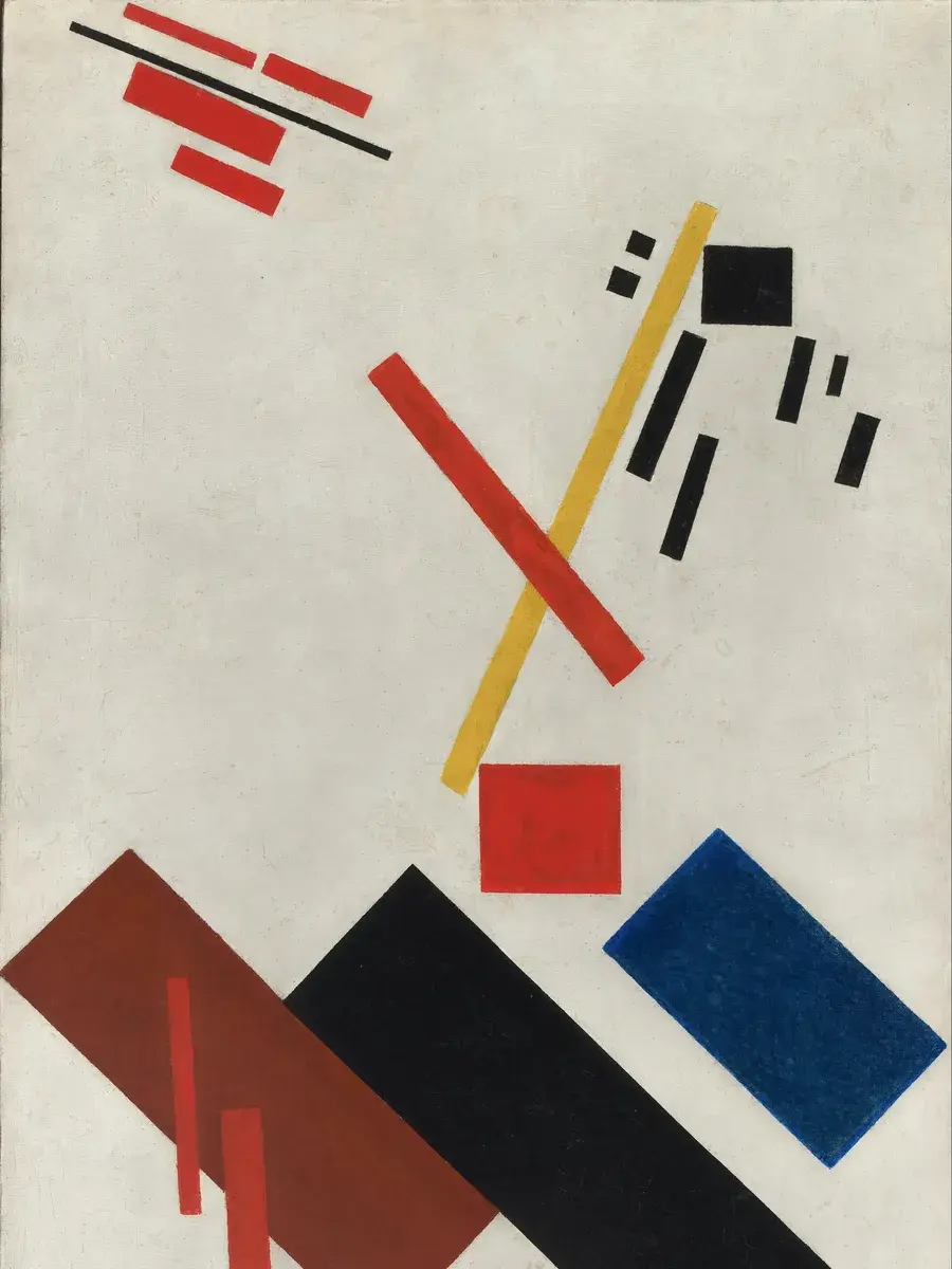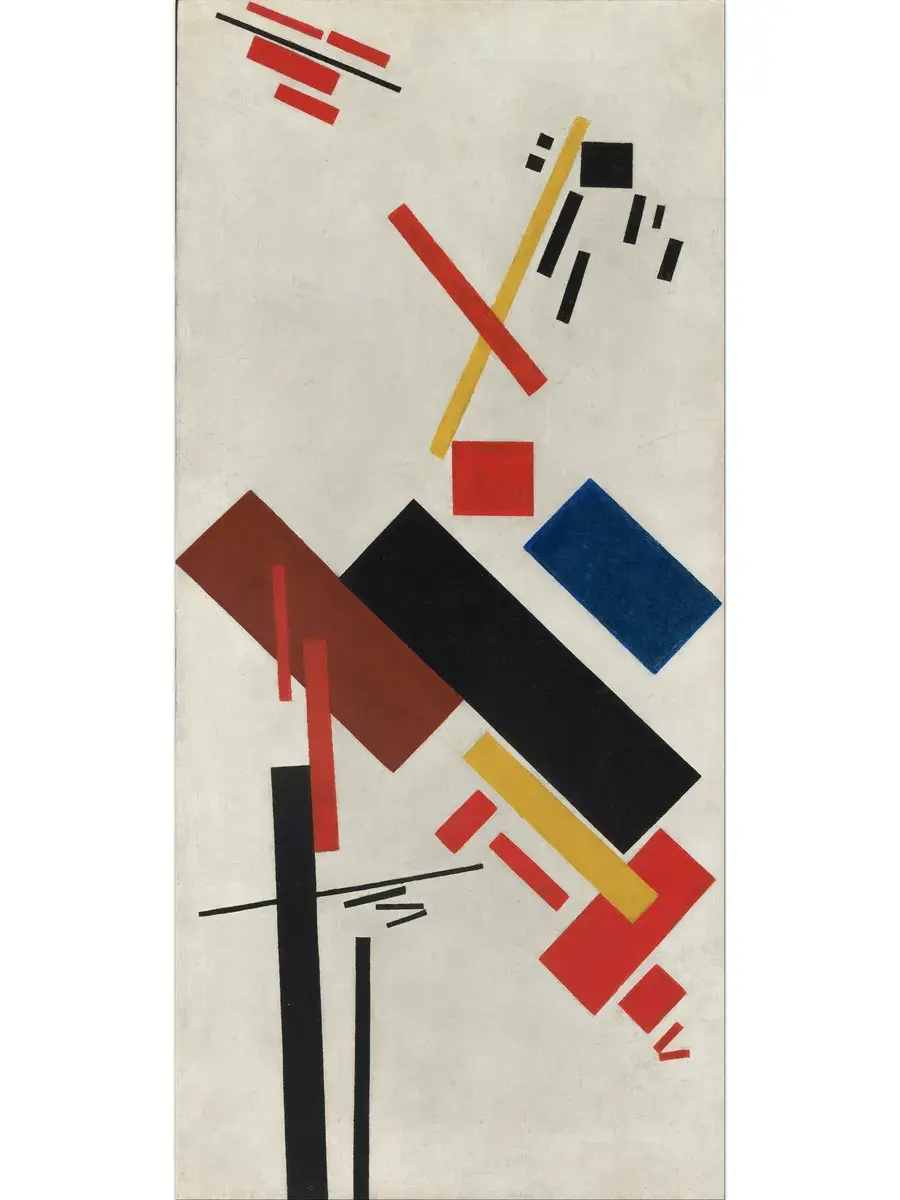 • Казимир Малевич "Живописный реализм футболиста - Красочные массы в четвертом измерении" 31.0×19.6 см — Оригинал 70.2×44.5 см (1915 год) — Музей современного искусства (MoMA), Нью-Йорк, США
