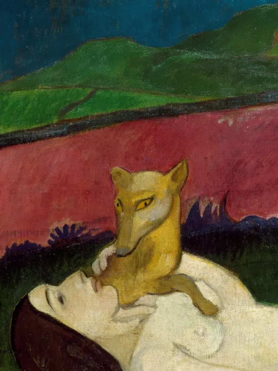 • Поль Гоген "Потеря девственности" 45.0×31.0 см — Оригинал 90×130 см (1890-91 год) — Художественный музей Нортона Саймона, Пасадина, США