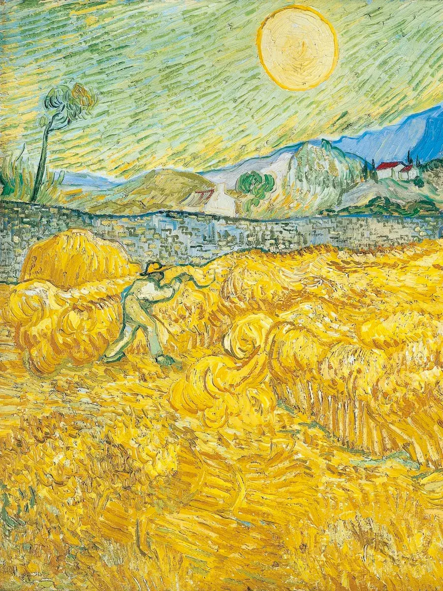 • Ван Гог "Пшеничное поле за больницей Святого Павла с жнецом" 37.8×31.0 см — Оригинал 59.5×72.5 см (1889 год) — Музее Фолькванг, Эссен, Германия