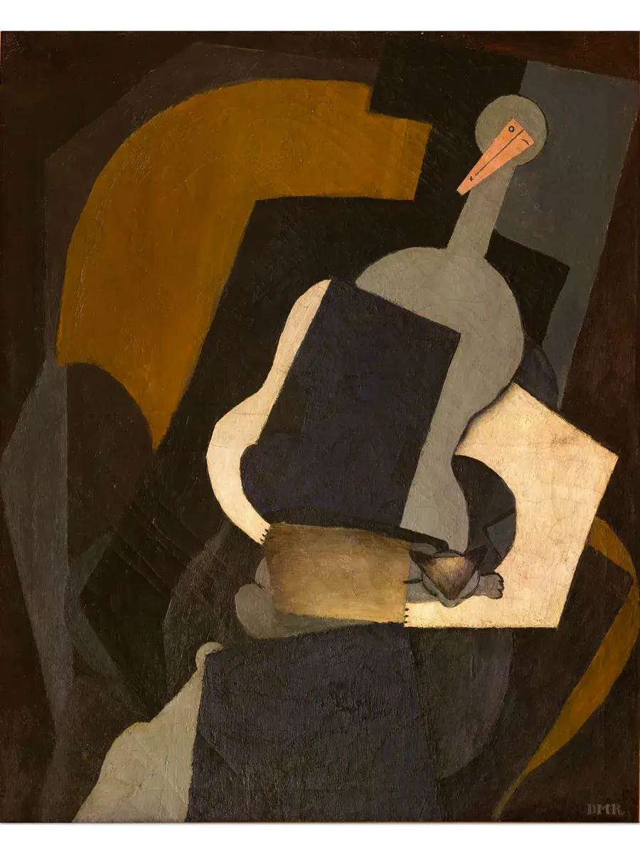 • Диего Ривера "Сидящая женщина (Женщина с телом гитары)" 38.3×31.0 см — Оригинал 99.7×79.4 см (1915 год) — Частная коллекция, ,