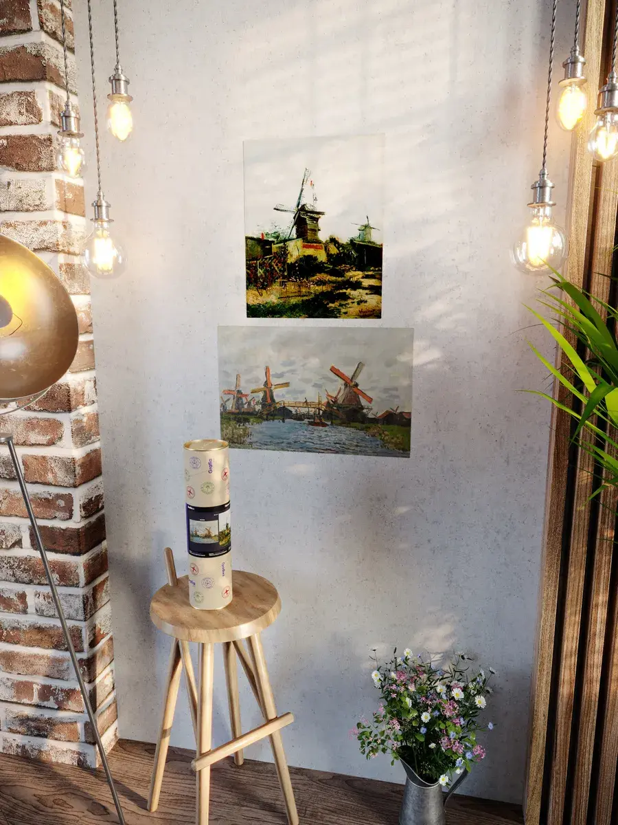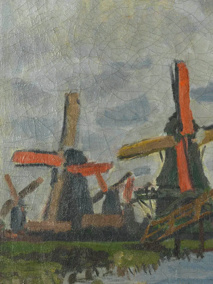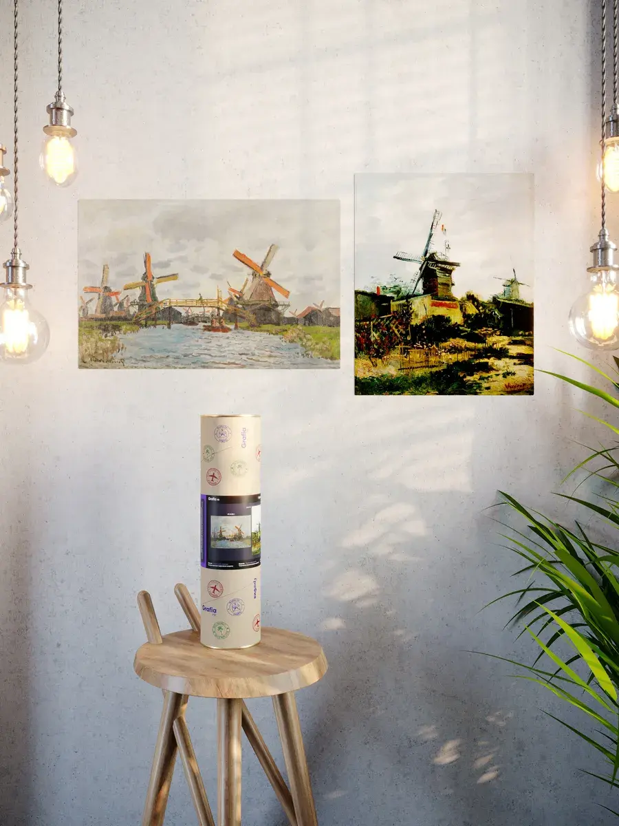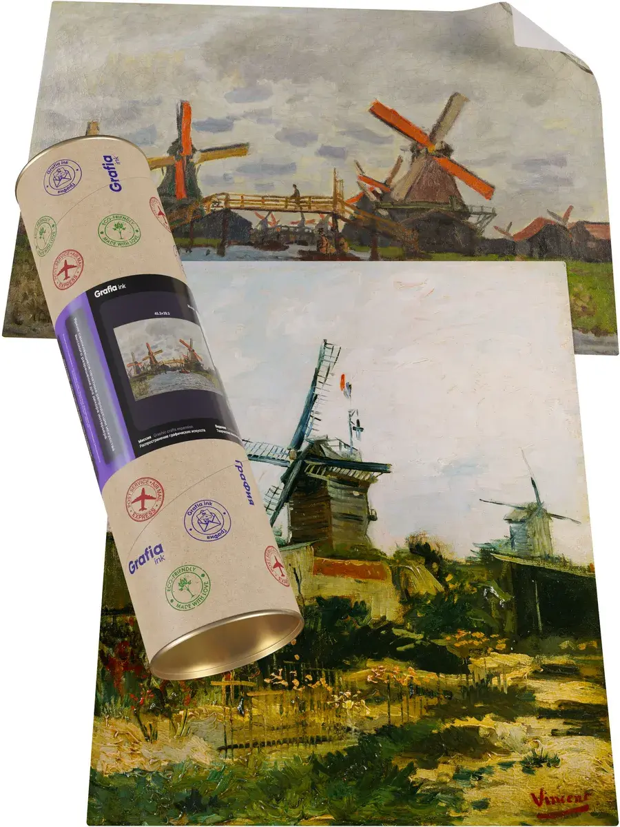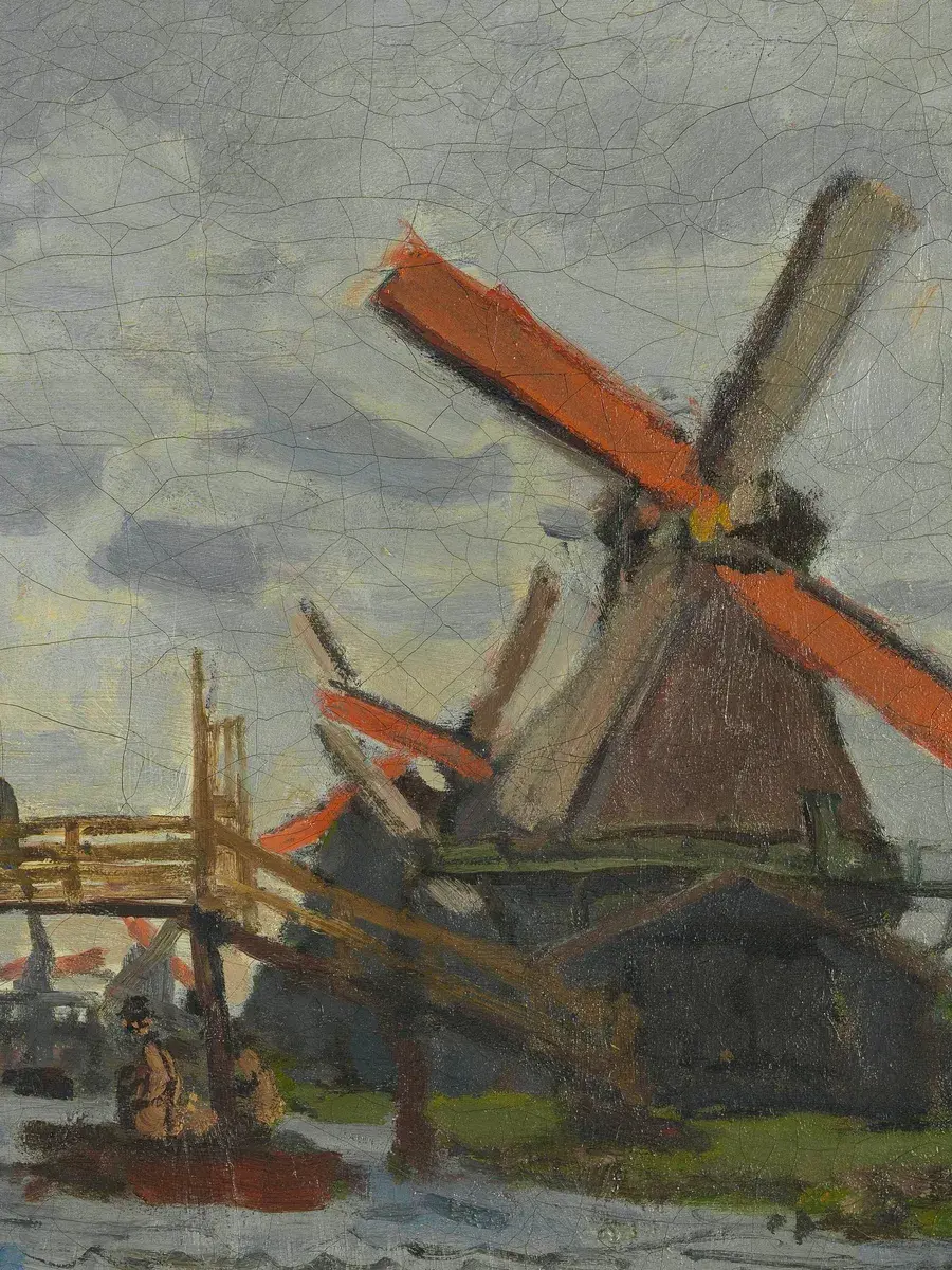 • Клод Моне "Мельницы в Зандаме" 45.3×29.3 см — Оригинал 48.3×74.2 см (1871 год) — Музей Ван Гога, Амстердам, Нидерланды
