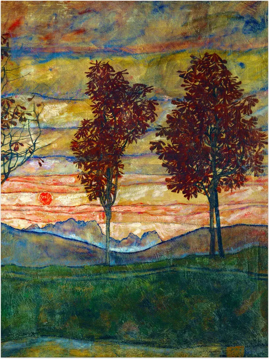 • Эгон Шиле "Четыре дерева" 38.5×30.8 см — Оригинал 110.5×141 см (1917 год) — Галерея Бельведер, Вена, Австрия