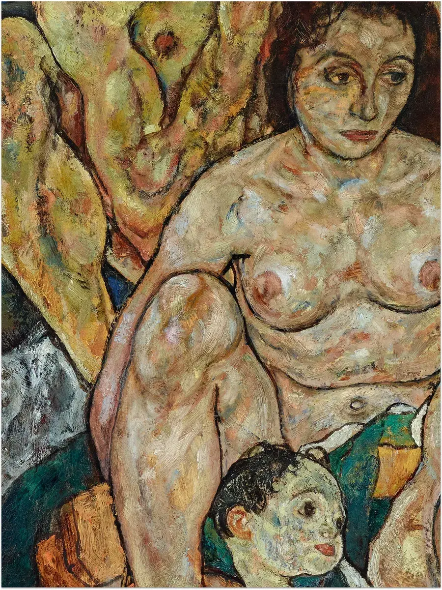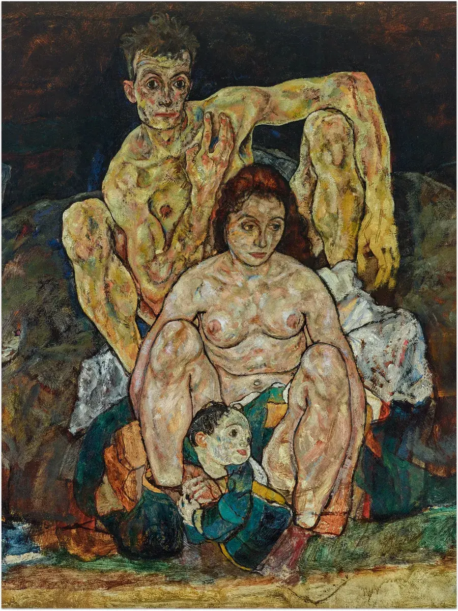 • Эгон Шиле "Сидящая пара (Семья)" 32.8×31.0 см — Оригинал 98×155 см (1918 год) — Галерея Бельведер, Вена, Австрия