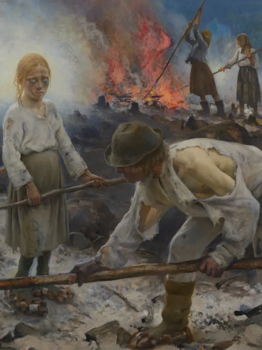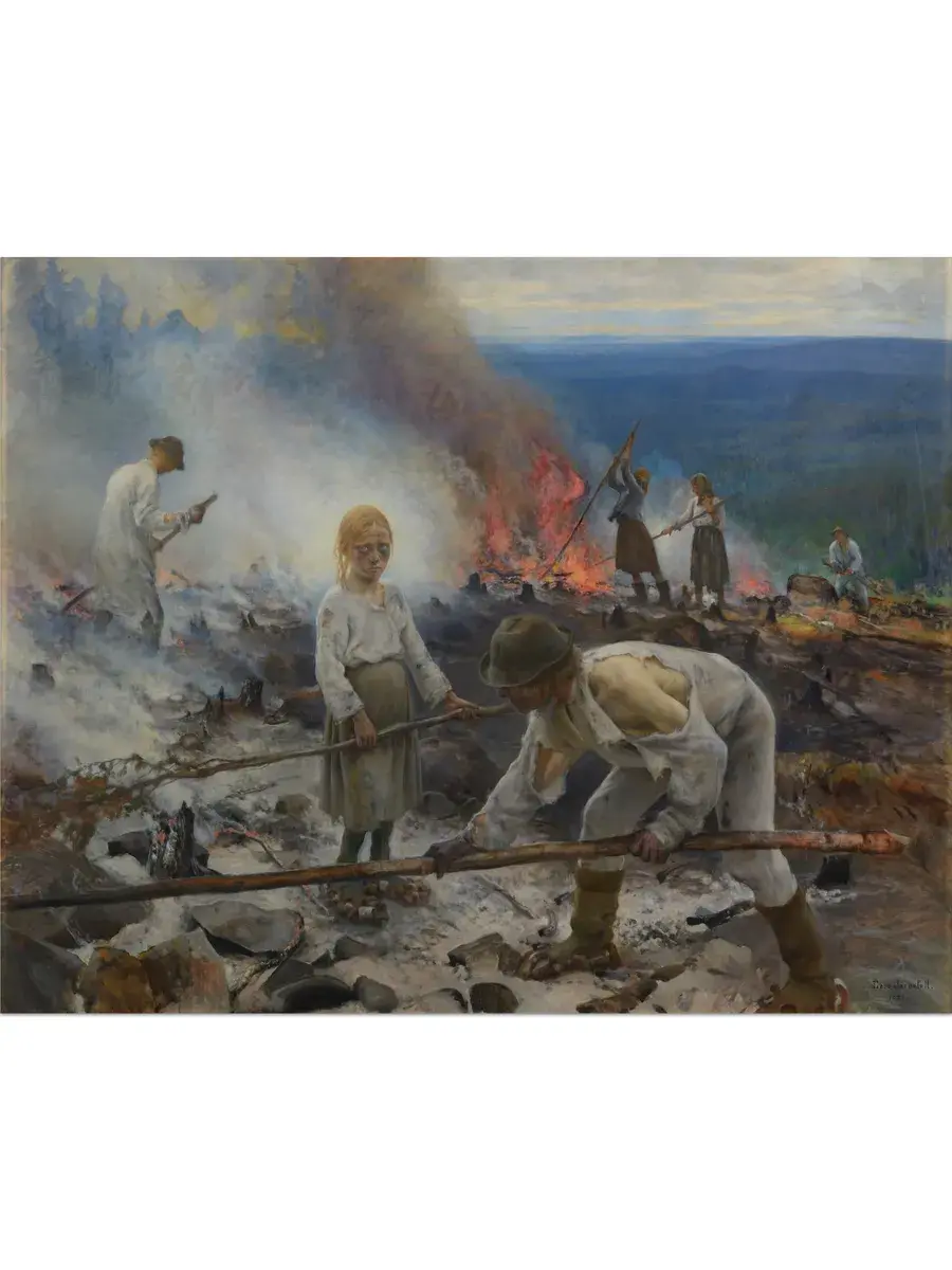 • Ээро Ярнефельт "Под игом (Выжигание леса)" 38.8×30.8 см — Оригинал 127×122.5 см (1893 год) — Атенеум, Хельсинки, Финляндия