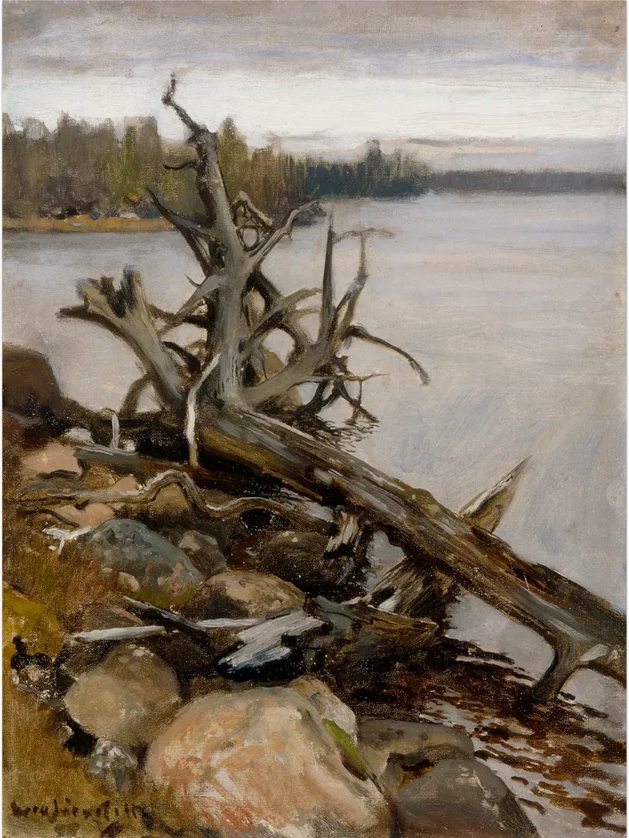 • Ээро Ярнефельт "Сосна в воде" 41.6×31.0 см — Оригинал 46×55 см (1895 год) — Атенеум, Хельсинки, Финляндия