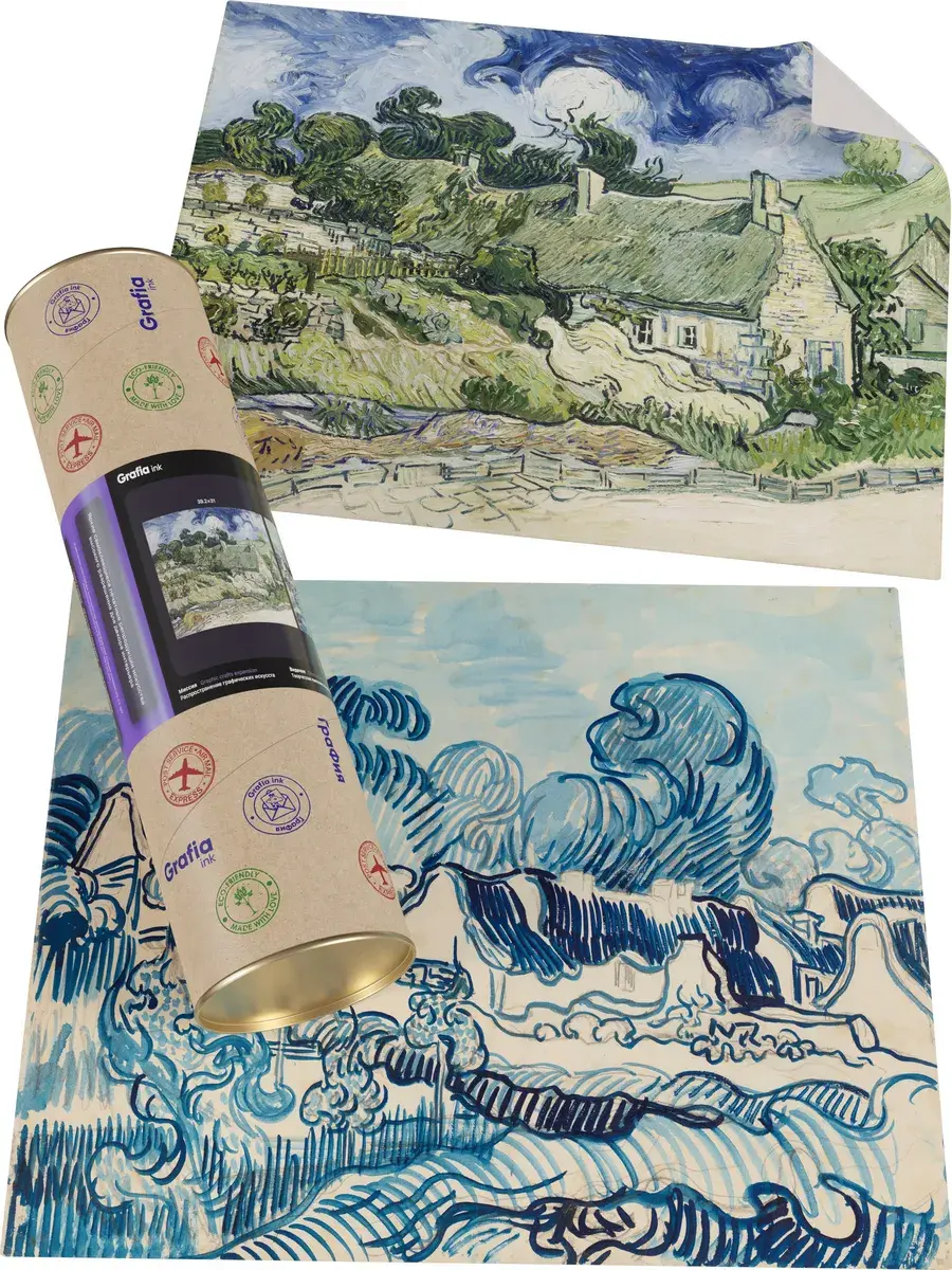 • Ван Гог "Дома с соломенными крышами в Кордевилле" 38.9×30.8 см — Оригинал 73×92 см (1890 год) — Музей Орсе, Париж, Франция