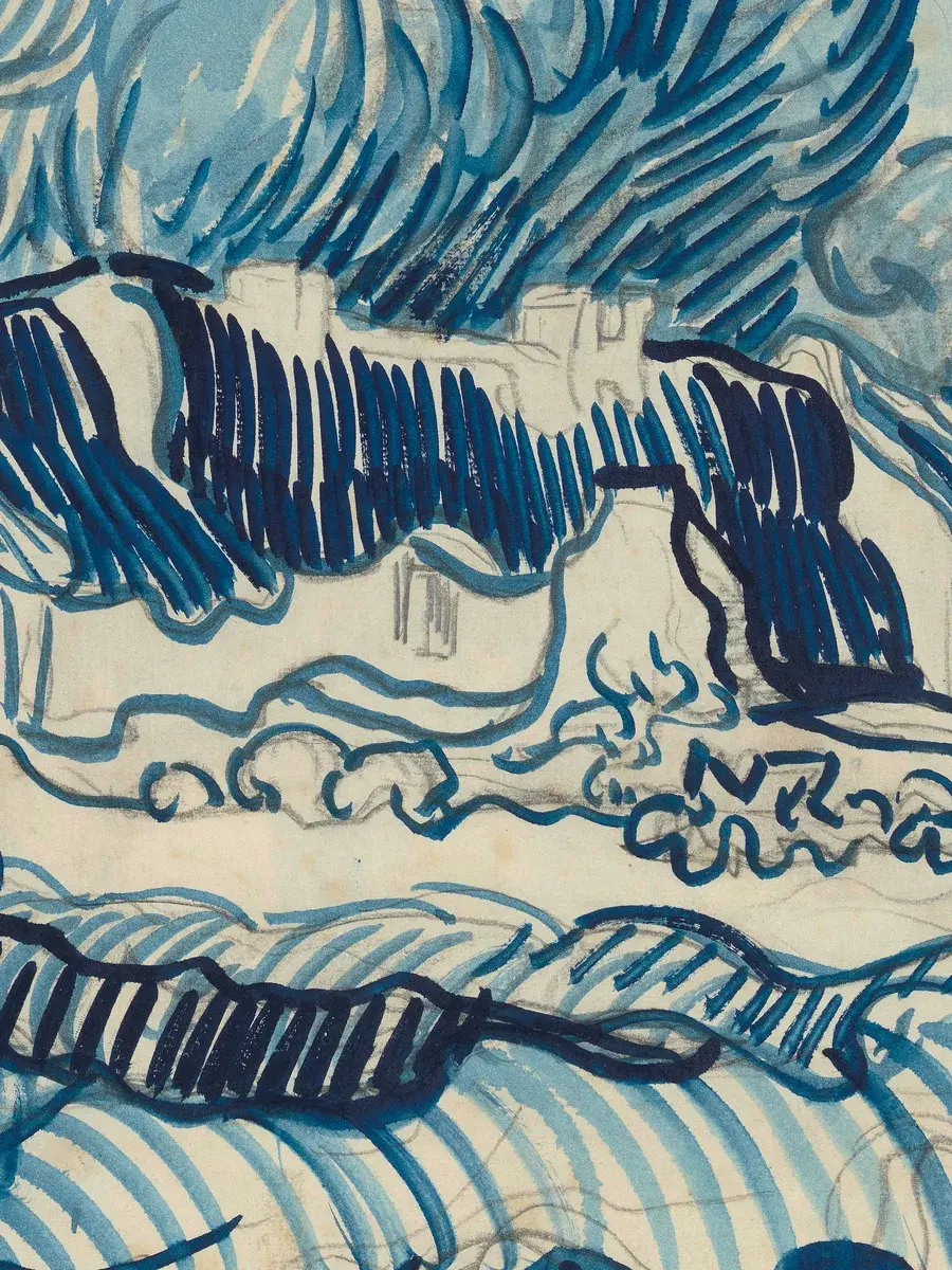 • Ван Гог "Пейзаж с домами" 38.6×31.0 см — Оригинал 43.5×80 см (1890 год) — Музей Ван Гога, Амстердам, Нидерланды