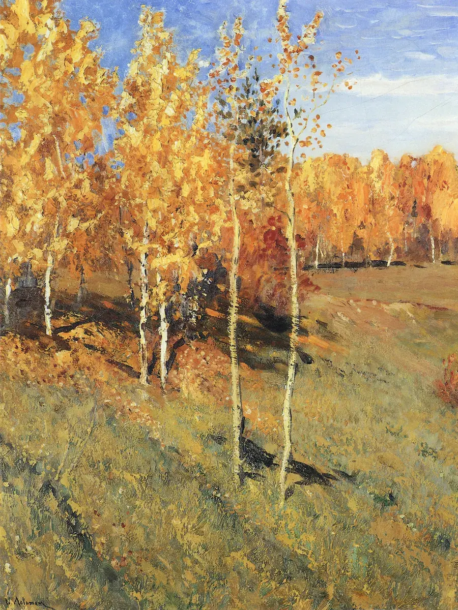 • Исаак Левитан "Золотая Осень" 45.3×29.1 см — Оригинал 82×126 см (1895 год) — Третьяковская галерея, Москва, Россия