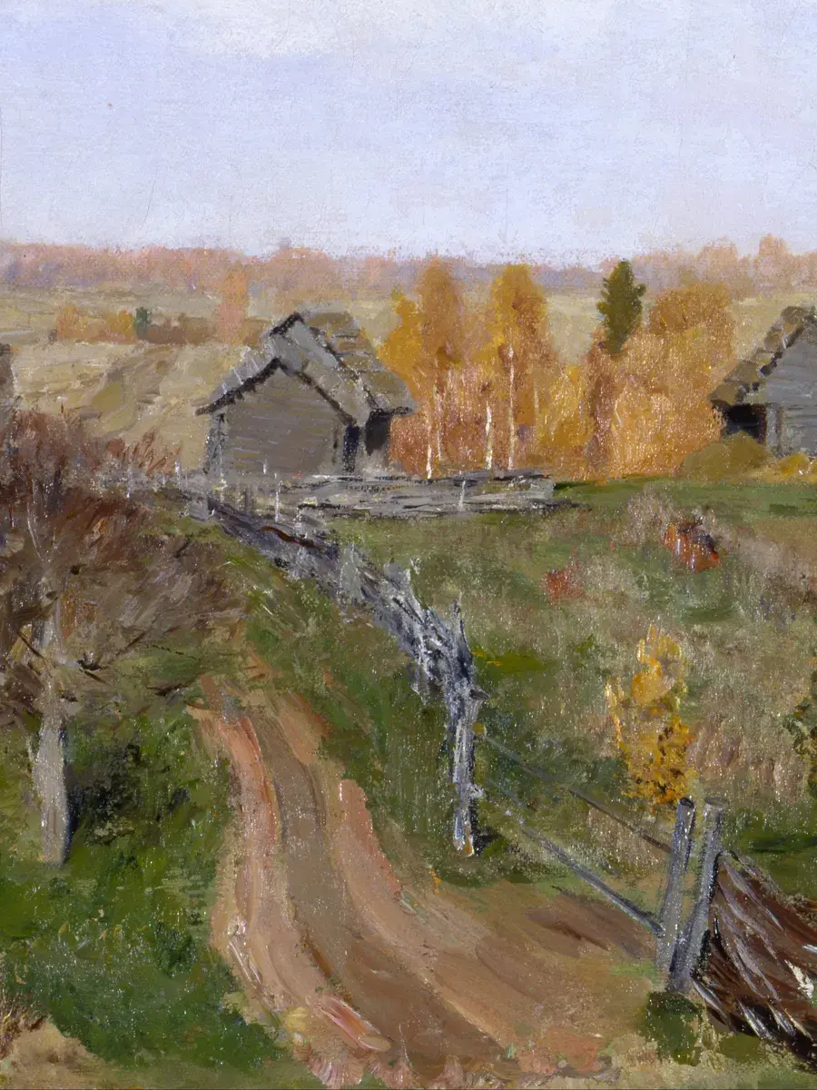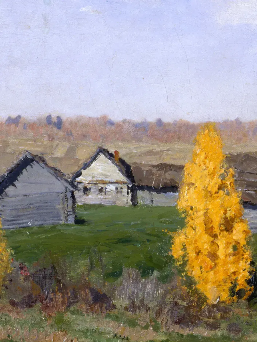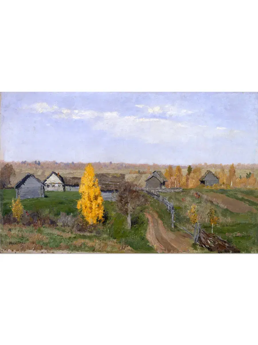 • Исаак Левитан "Золотая осень. Слободка" 31.0×19.3 см — Оригинал 43×67 см (1889 год) — Третьяковская галерея, Москва, Россия