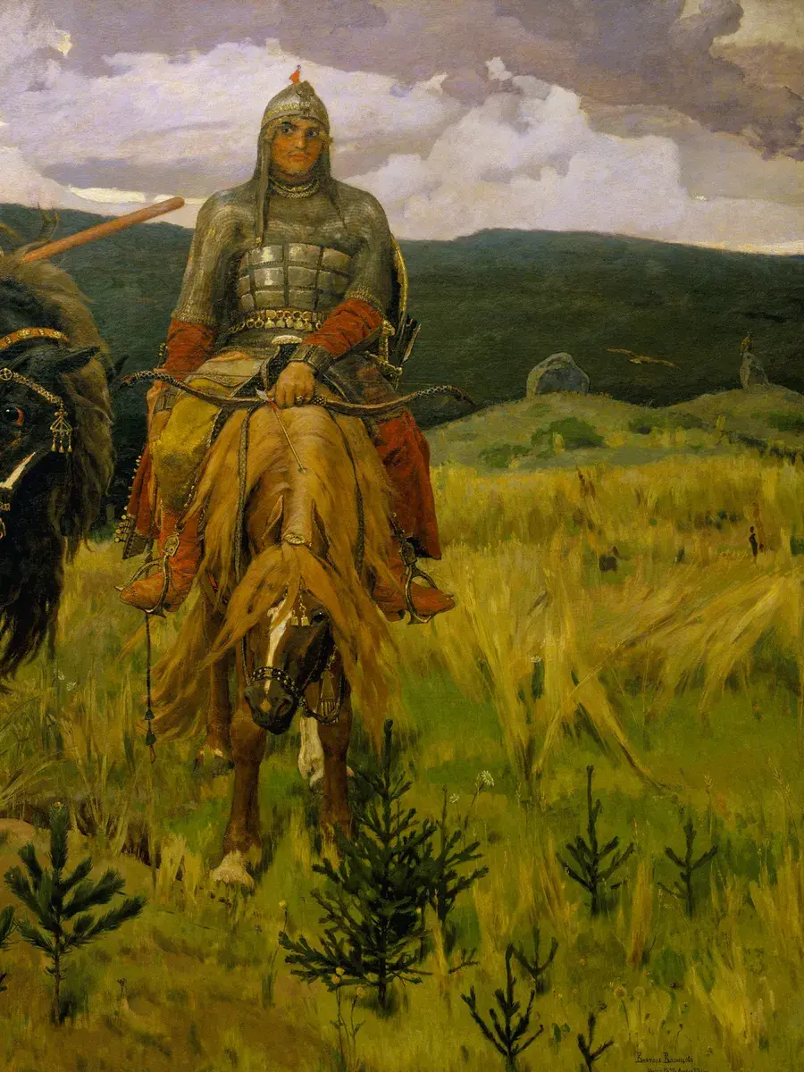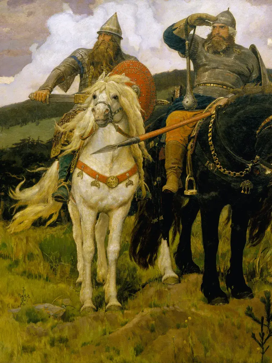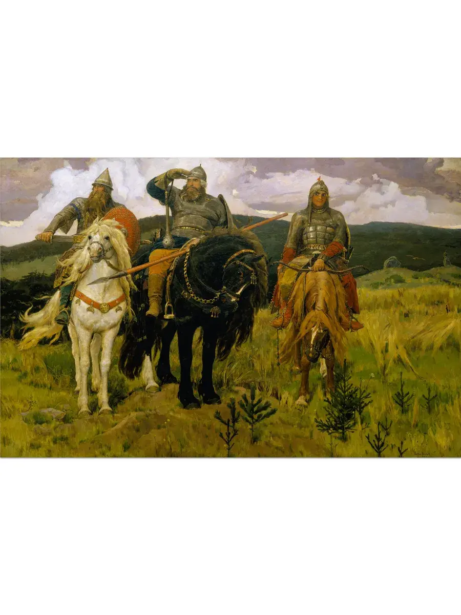 • Виктор Васнецов "Богатыри" 45.3×29.4 см — Оригинал 295.3×446 см (1898 год) — Третьяковская галерея, Москва, Россия