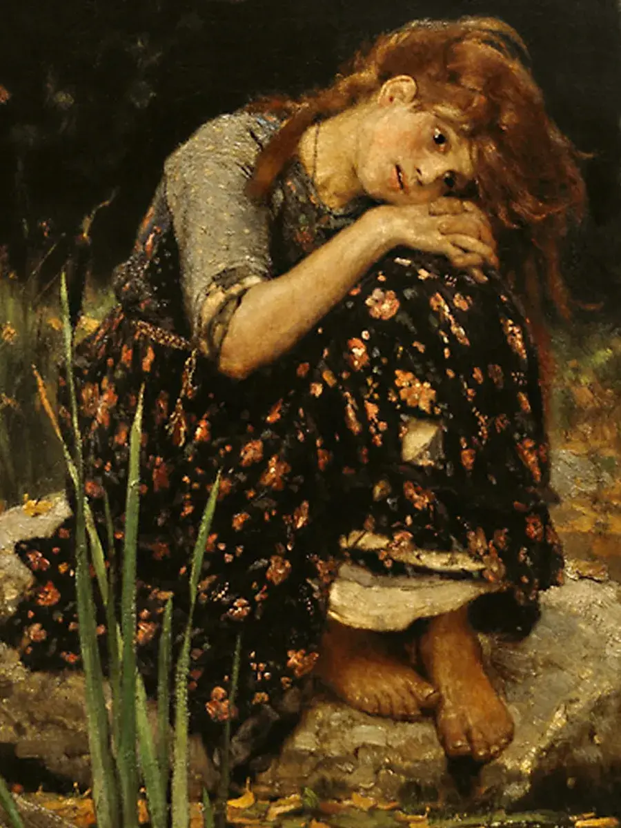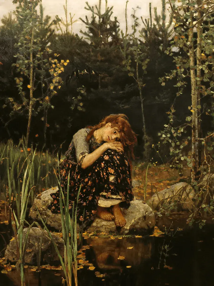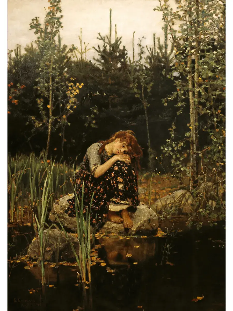 • Виктор Васнецов "Алёнушка" 44.0×31.0 см — Оригинал 173×121 см (1881 год) — Третьяковская галерея, Москва, Россия