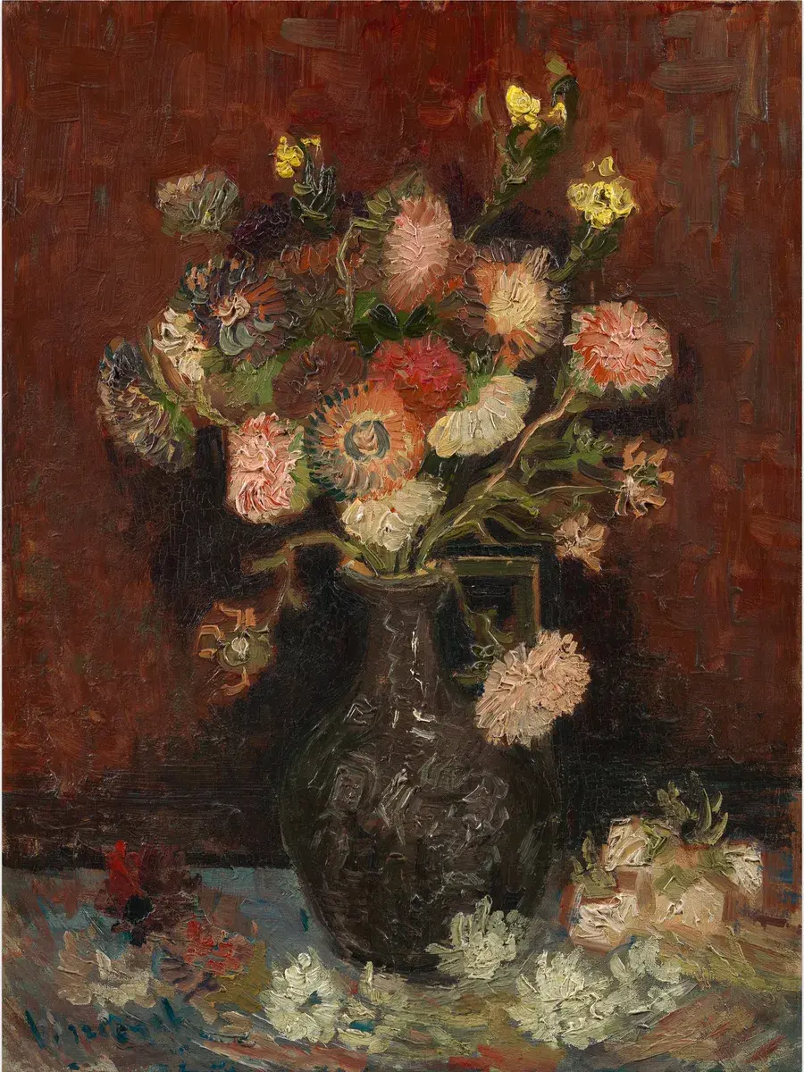 • Ван Гог "Ваза с астрами и гладиолусами" 41.3×30.8 см — Оригинал 61×46 см (1886 год) — Музей Ван Гога, Амстердам, Нидерланды