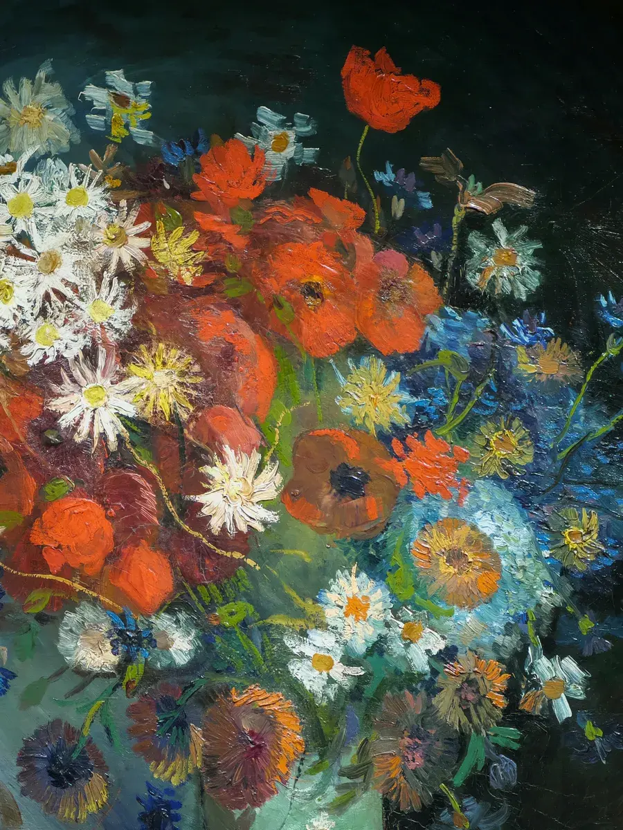 • Ван Гог "Ваза с полевыми цветами и розами" 41.1×31.0 см — Оригинал 99×79 см (1886 год) — Музей Крёллер-Мюллер, Оттерло, Нидерланды