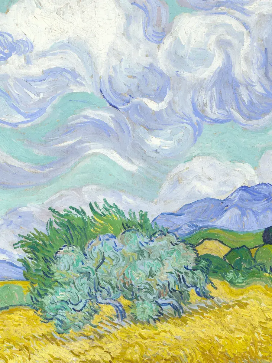 • Ван Гог "Пшеничное поле с кипарисами" 38.8×30.8 см — Оригинал 72.1×90.9 см (1889 год) — Лондонская национальная галерея, Лондон, Великобритания