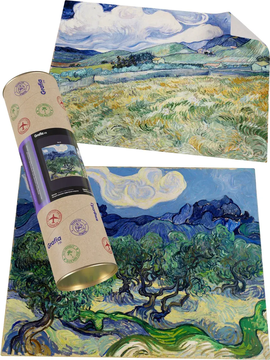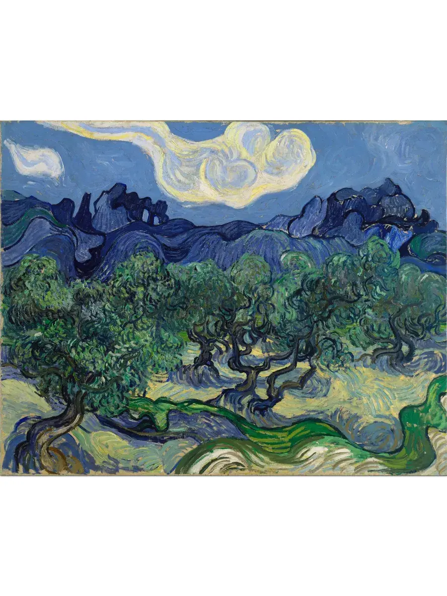 • Ван Гог "Оливковые деревья" 38.8×30.8 см — Оригинал 72.6×91.4 см (1889 год) — Музей современного искусства (MoMA), Нью-Йорк, США