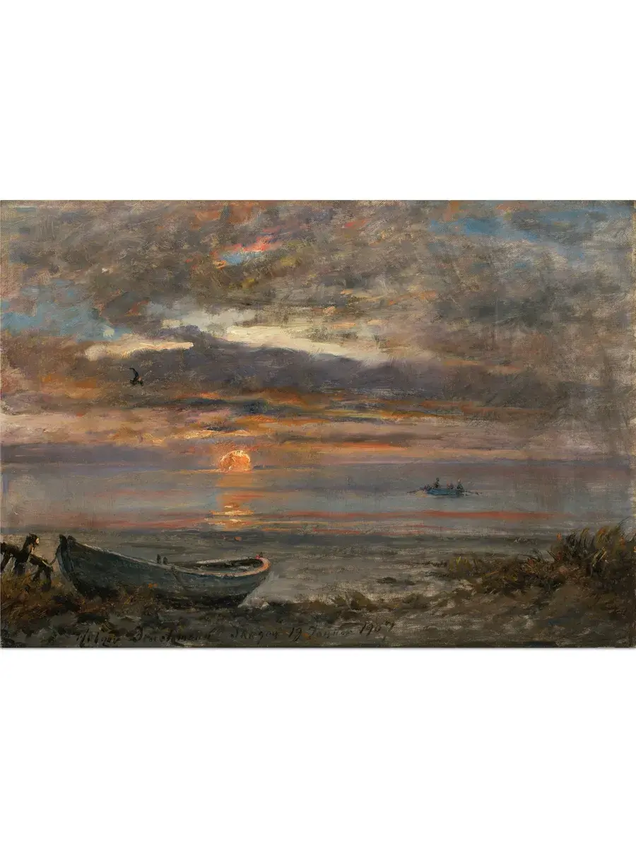 • Хольгер Драхман "Закат в январский день в Скагене" 44.0×31.0 см — Оригинал 67×97 см (1902 год) — Музей Скагена, Скаген, Дания