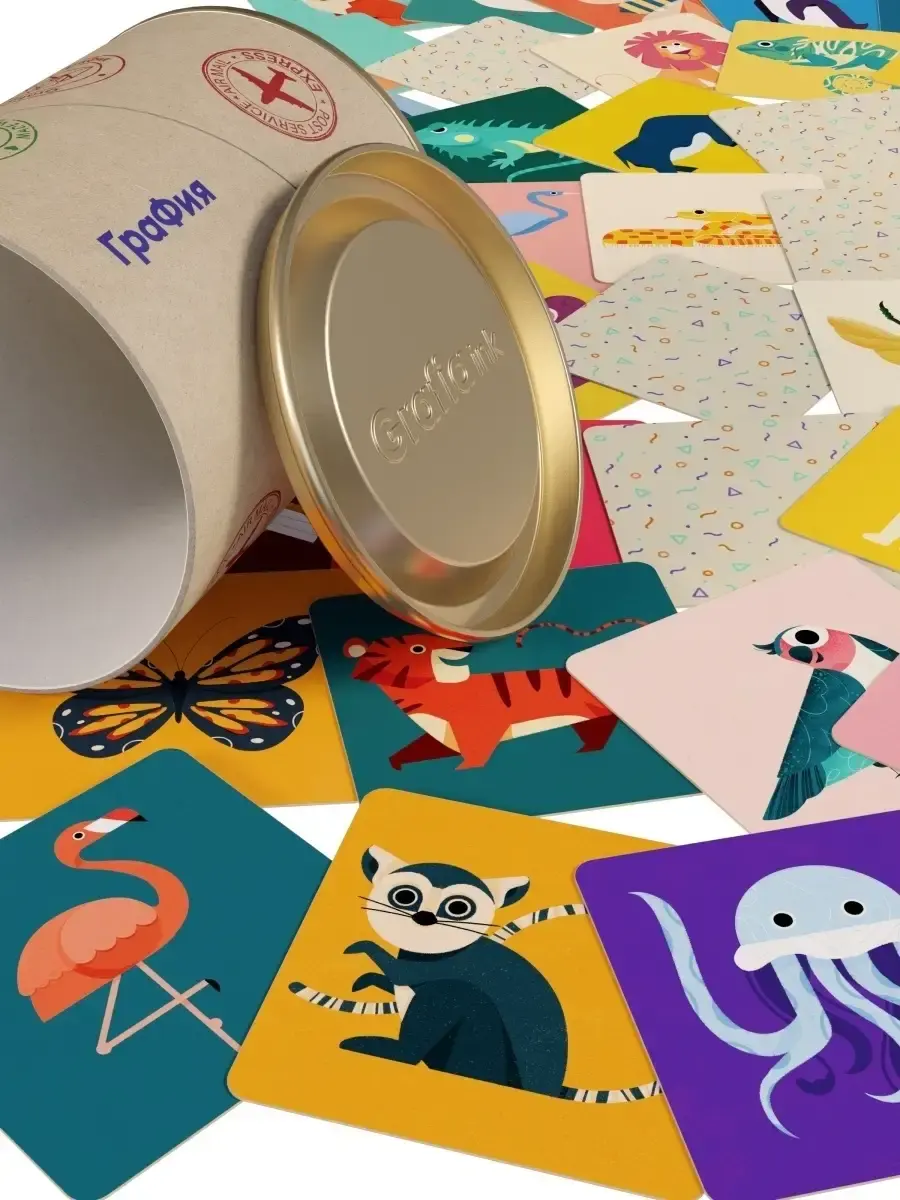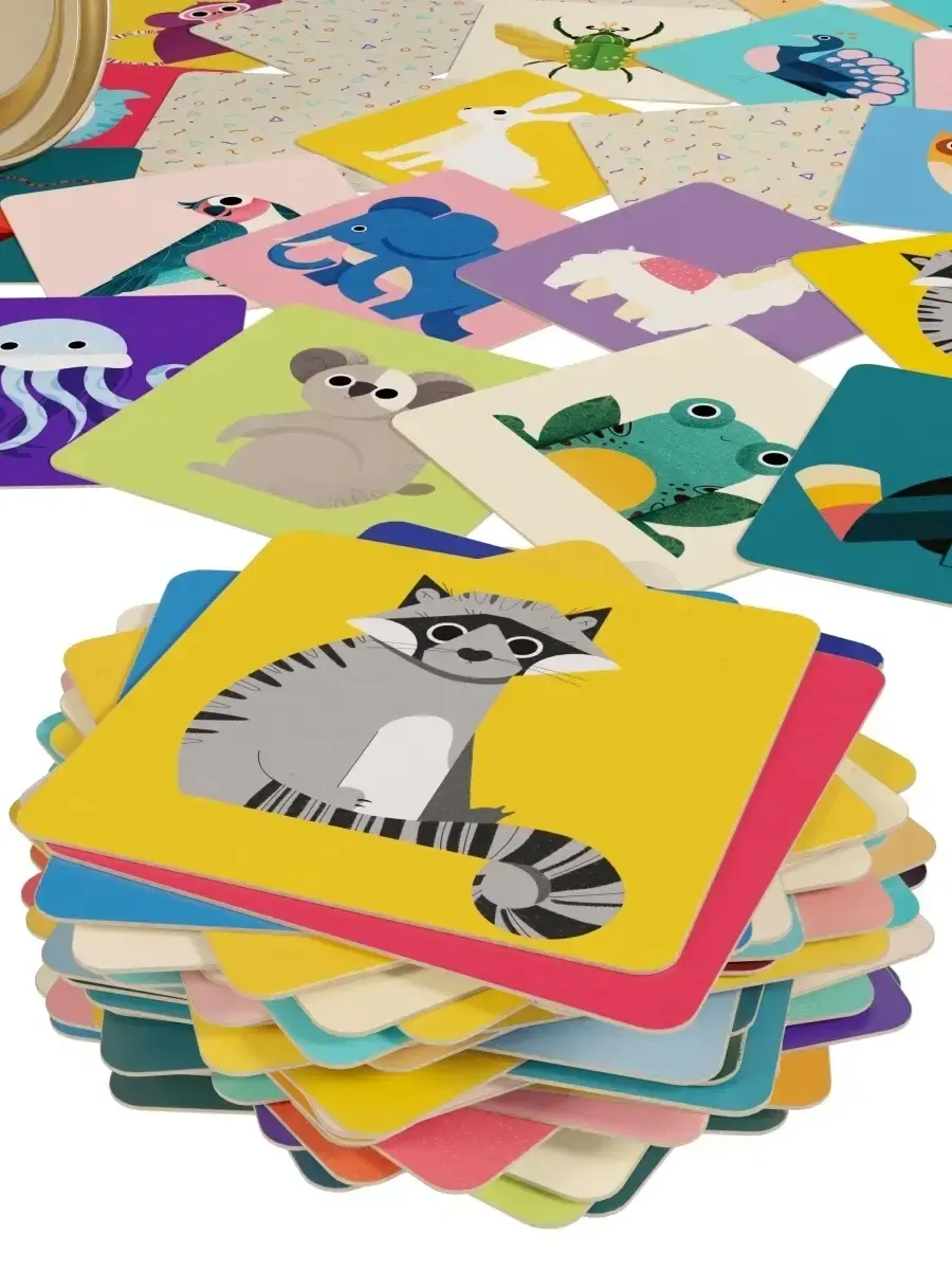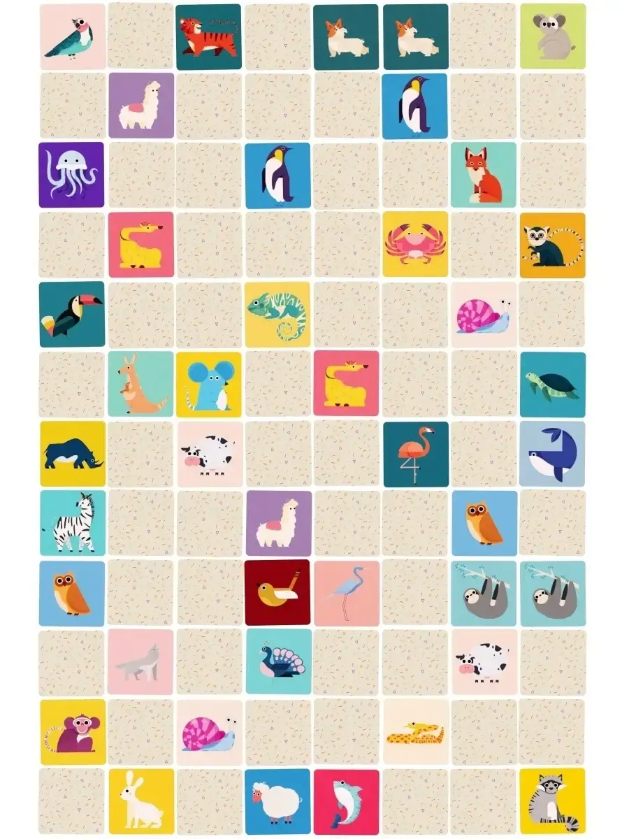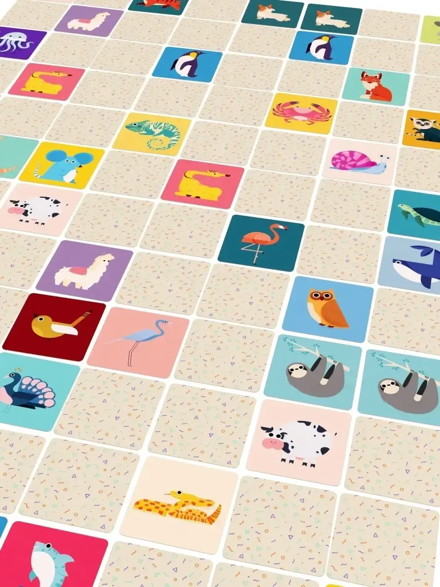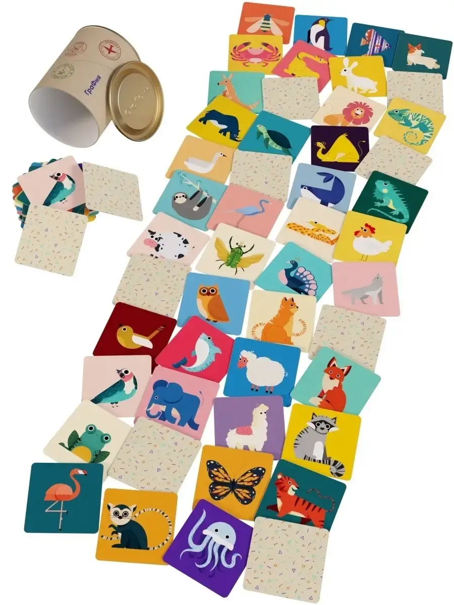 Обучающая настольная игра для развития памяти малышей и взрослых "Мемори - найди пару" составлена из 48 пар мультипликационных картинок животных в стиле пиксельной краски: Лёгкое визуальное восприятие - Красочная печать на плотном картоне с тактильной мягкостью - Удобное хранение в прочном тубусе 11x10см 96 карточек размером 7x7 - Возможность повышения сложности и комбинаций от 8 до 48 пар и интересная игра на равных с детьми - Хороший интеллектуальный и красивый подарок! Рисунок: птицы, насекомые, животные + морские + домашние.