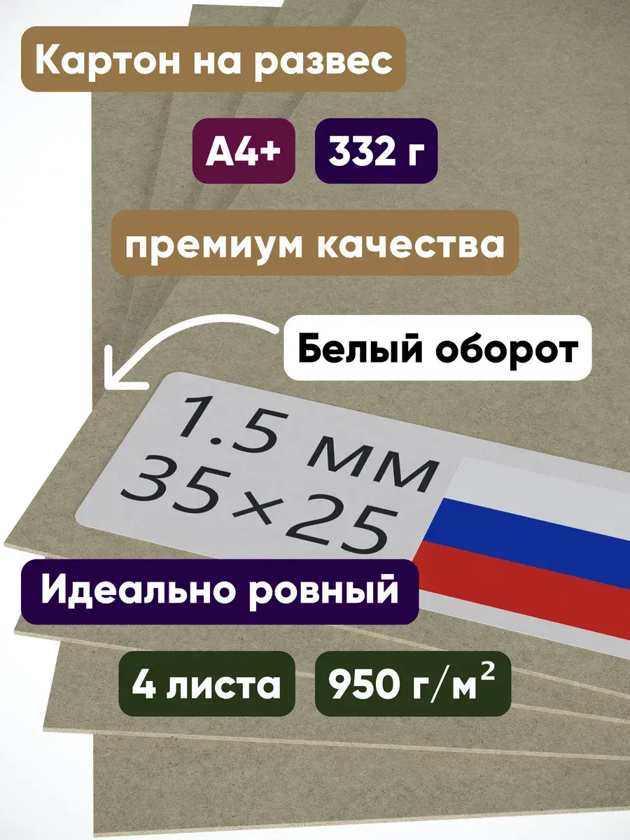 переплетный Картон плотный формата А4 крафтовый толстый твердый для рисования творчества школы скрапбукинга переплета обложки блокнота - жесткий [чем картон 2 мм пивной цветной гофрированный] матовый немелованный двусторонний крафтовый (коричневый светлый крафт в массе) обычный переплётный обложечный - школьный для гербария • моделирования поделок домика • макетирования макетов коробок - художественный холст рамка для рисунка гуаши акрила • холста картин карт пазлов на стену - для выкройки выкроек лекал шитья • Канцелярские товары России [картонажная фабрика Сураж, производство АО 'Пролетарий' с 1894 года из первичных волокон] в школу • Толщина 1 . 5 мм • Плотность 950 г/м² • Масса 332.5 г • Набор ×4 листовой [листы 35 × 25 см размер • в листах формат А4 +]